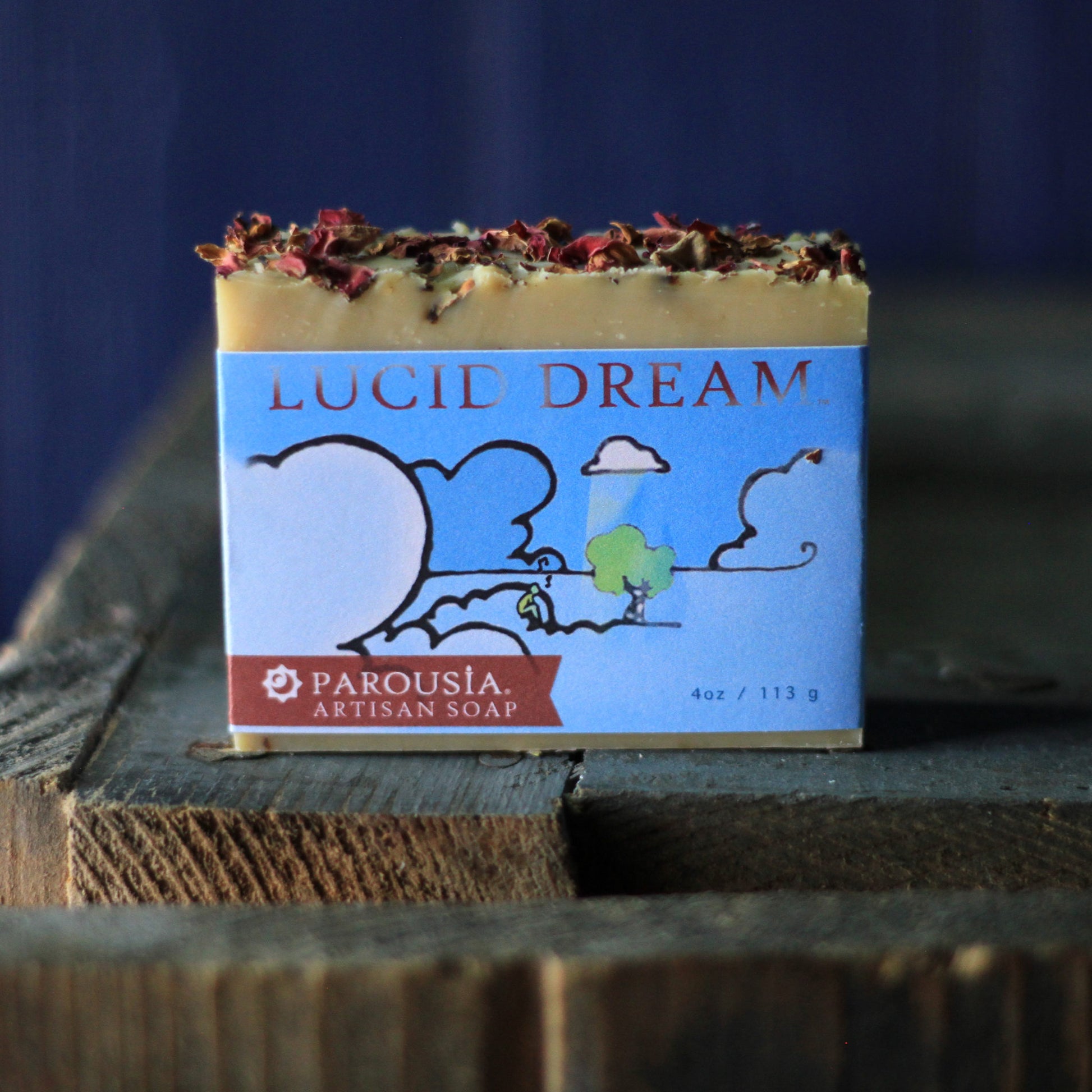 Lucid Dreams Artisan Soap will make you feel like you're dreaming when you smell the deep notes of Oak Moss, Patchouli, Cypriol and Clove balanced by the high notes of Sweet Orange and Plumeria. Topped with crushed rose petals.